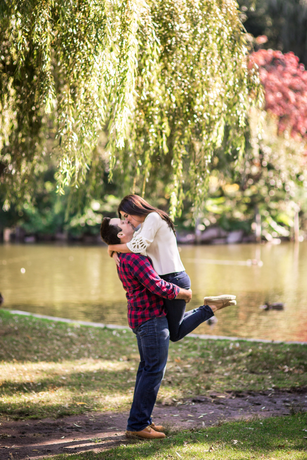 Jessica and Nick put their love on display in the Boston Public Garden for some adorable engagement photos with their beloved bulldog. Photography by Brittany captured their love with perfect lighting and warm tones.