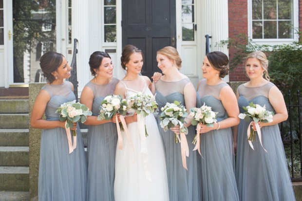 Photographer: Sweet Lady Jane Photography | Reception Venue: The Pickering House | Floral Designer: Floral Lab | Dress Designer: BHLDN | Equipment Rentals: The Event Company | Makeup Artist: Lyndsay Simon | Bridesmaid Dresses: Jenny Yoo | Apparel: Flair Boston | Caterer: American Barbecue | Transportation: Salem Trolley | Submitted via Two Bright Lights