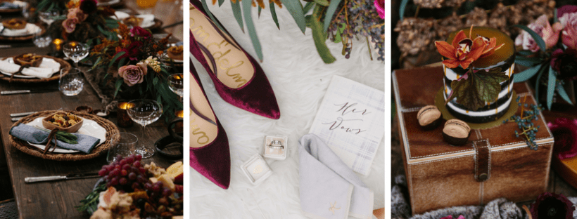 This offbeat industrial vintage wedding inspiration has all the jewel fall tones we've been waiting for!