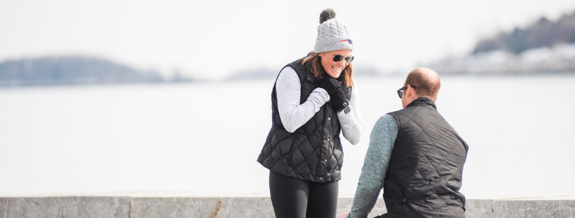 Cara and Brian's Castle Island Proposal has a diamond, a dog, and a surprise family appearance!