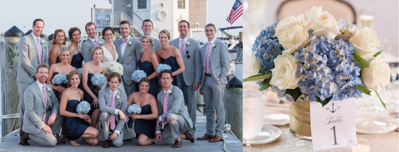 Maggie and Doug's wedding featured classic New England details, from the navy and white pallet to the bounty of fresh hydrangeas. It all fit seamlessly into the seaside setting!